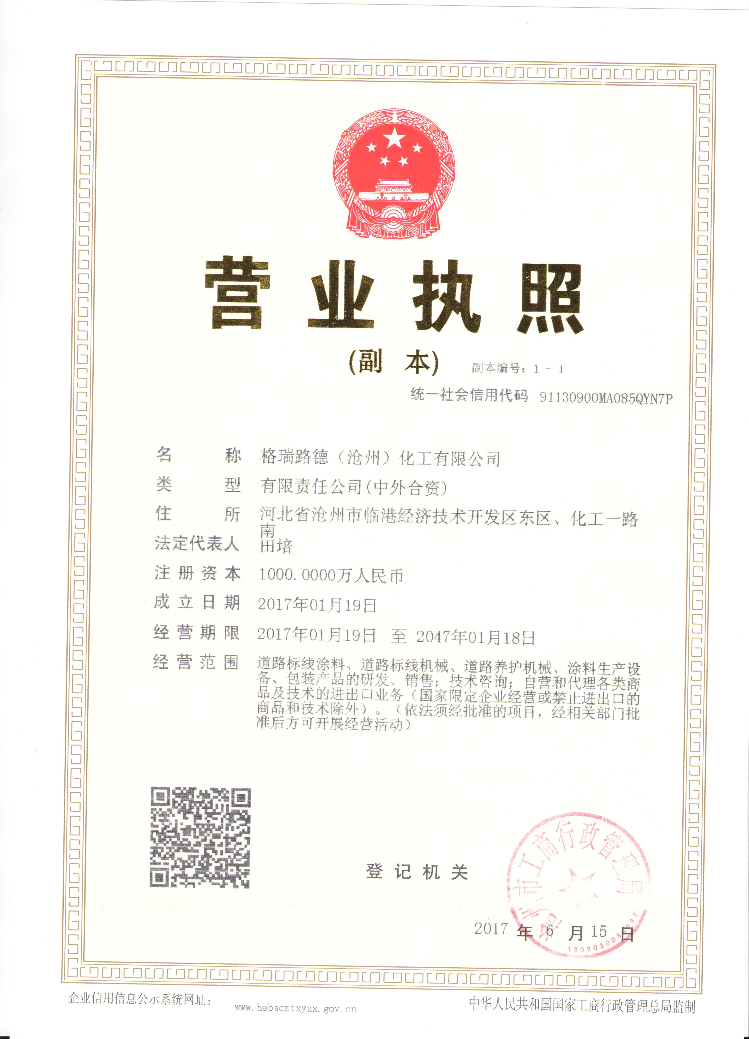 为助力中国标线市场的高质量发展及持续升级,格瑞路德在京津冀一体化化工产业发展核心区域 —— 沧州渤海新区,全资设立 “格瑞路德(沧州)化工有限公司”(以下简称“沧州公司”)。依托这一战略布局,沧州公司始终恪守 “专业、全面、领先、共赢” 的战略合作原则,其市场合作理念主要涵盖以下四大维度: